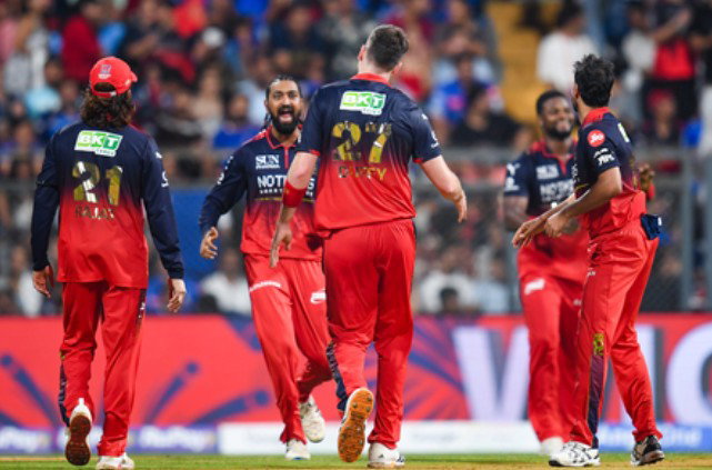 Royal Challengers Bengaluru 240/4 in 20 overs (Phil Salt 78, Rajat Patidar 53, Virat Kohli 50, Tim David 34 not out; Shardul Thakur 1-32, Hardik Pandya 1-39) beat Mumbai Indians 222/5 in 20 overs (Sherfane Rutherford 71 not out, Hardik Pandya 40; Suyash Sharma 2-47, Krunal Pandya 1-26) by 18 runs.