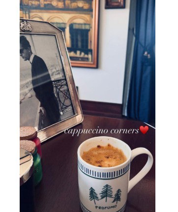 The picture shared by Kareena reflects a calm, intimate corner of her home, with her enjoying a freshly brewed cup of coffee placed on a wooden table, that she calls as her, “cappuccino corners.”