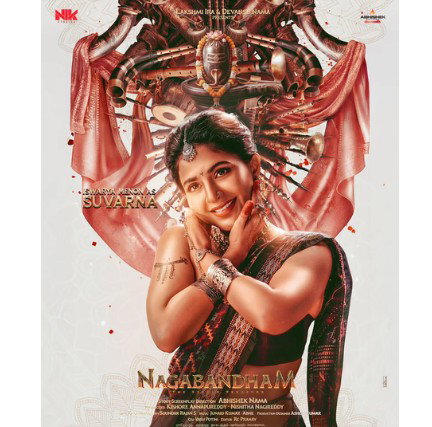 Taking to its social media timelines to share Iswarya Menon's look in the film, the production house Nik Studios wrote, "Her love knows no bounds. Presenting the alluring @iswarya.menon as 'Suvarna' from #Nagabandham. Witness her gracious presence in #SuraSura from April 19th. In Cinemas Worldwide On July 3rd."