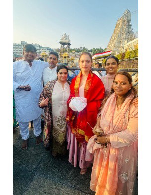 Actress Tamannaah Bhatia visited the Tirumala Temple in Andhra on Sunday to seek the blessings of Lord Venkateswara, an incarnation of Lord Vishnu.