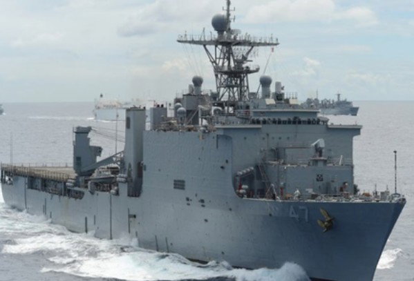 The US Central Command has said that the dock landing ship USS Rushmore is conducting blockade operations in the Arabian Sea.