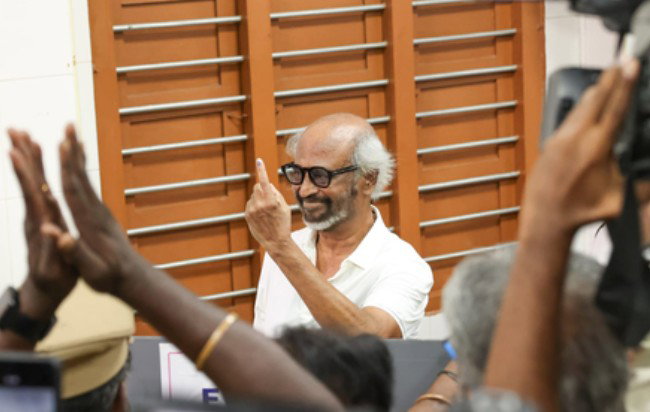 Rajinikanth, who arrived with his younger daughter, director Soundarya Rajinikanth, at the Stella Maris College for Women, proudly displayed his inked finger to the media after casting his vote.