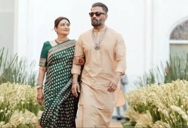 In the picture shared by Suniel, the actor is seen walking alongside his sister at what seems to be a wedding occasion.