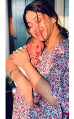 In the picture, Additi is seem holding her little one in her arms closely.