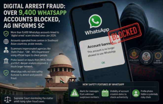 More than 9,400 WhatsApp accounts linked to India and involved in the so-called 'digital arrest' scam have been banned since January 2026, Attorney General R. Venkataramani told the Supreme Court.
