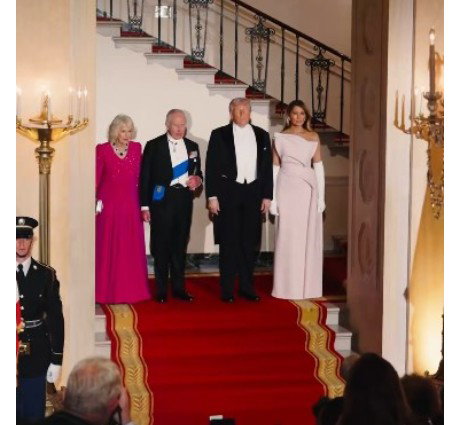 The evening began with familiar pageantry. Trump and First Lady Melania Trump walked into the East Room alongside King Charles and Queen Camilla to applause. It was a carefully staged image of continuity — two leaders tied by history, now confronting a shifting geopolitical landscape.