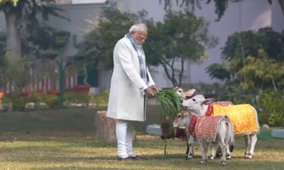 Prime Minister Narendra Modi fed cows at his residence in the national capital to celebrate the auspicious occasion of Makar Sankranti....