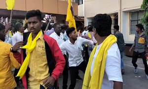 A large group of agitating Dhangar community members who marched to the Jalna Collectorate to submit ...