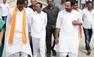 Union minister and state BJP president G. Kishan, along with other leaders of the party,...