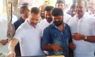 Congress leader Rahul Gandhi tried his hand at making a dosa at a roadside eatery in Telangana’s Jagtial district on Friday....