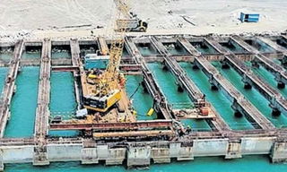 The first mother ship carrying massive cranes from China that arrived at Kerala's Vizhinjam International Seaport,...