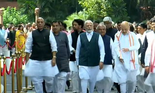Prime Minister Narendra Modi on Tuesday walked to the new Parliament building along with his cabinet colleagues,...