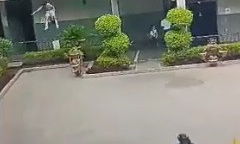 In a shocking incident, an eight-year-old Class 3 student here attempted to imitate a daring stunt from the popular Bollywood movie 'Krrish' and jumped from the first floor railing during school hours....