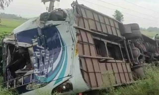 At least eight people were injured as a bus traveling from Bhubaneswar to Kolkata overturned after being hit by a speeding truck from behind in Odisha’s Balasore district on Friday, police said....
