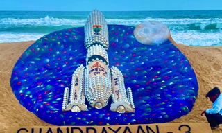 Renowned sand artist Sudarsan Pattnaik has created sand art of Chandrayaan-3 with an installation of 500 steel bowls and put up a message "Bijayee Bhava" at Puri beach in Odisha. ...