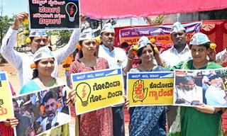 The Karnataka unit of Aam Aadmi Party (AAP) on Friday organised a protest against the Siddaramaiah-led government in the state for imposing conditions on the guarantee schemes promised ahead of the May 10 Assembly polls. c...