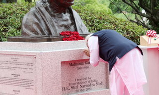 Prime Minister Narendra Modi on Saturday unveiled a bust of Mahatma Gandhi in Hiroshima, ...